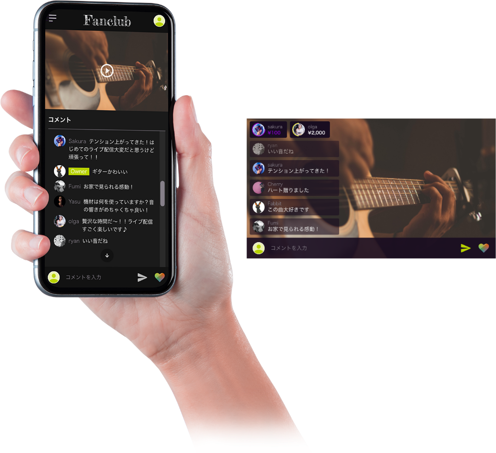 Bitfanでは、オーナーがPCやスマホから気軽にライブ配信を行うことができます。